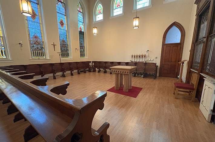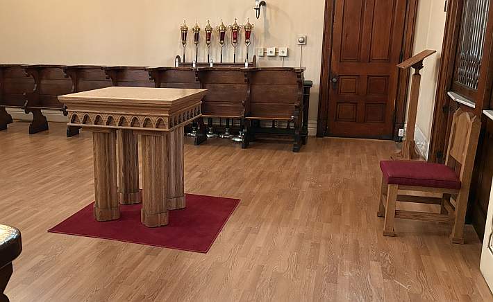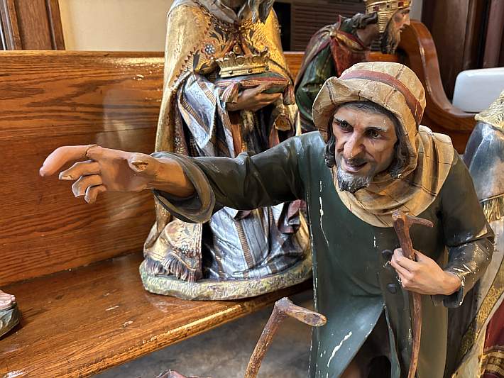 Yesterday the church crew started setting up a nativity scene at St. Boniface Church. Today I was back there for a mass for the Immaculate Conception and this is what I found. From what I understand, the St. Boniface tradition is to set up stable and manger and then the next week add the stable animals and then the last week before Christmas to add supporting people statues and then the Holy Family on Christmas Day, but it seems the animals were in a hurry to get there.