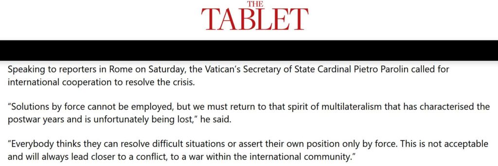 “Catholic personnel in the US military could in good conscience consider disobeying orders to attack Greenland, according to the bishop responsible for their pastoral care.