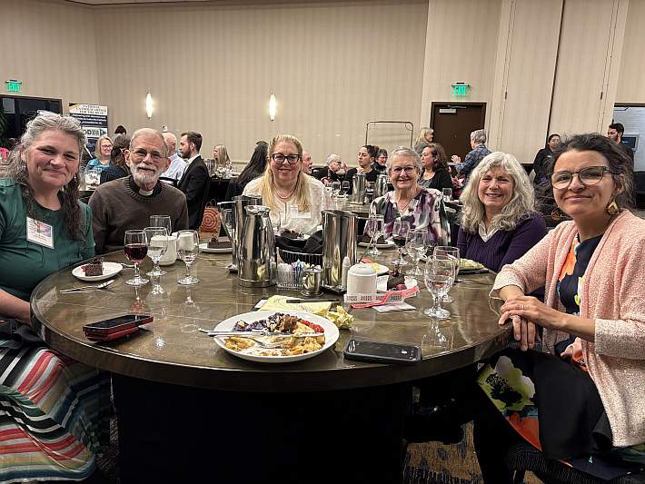 We flew through Denver to get to Portland from Louisville, and then in Portland it was a 24-mile drive to the hotel where the gathering is being held. On the drive I noticed one sign that we are not in Kentucky: the trees here have no mistletoe while the barren trees around Louisville are full of the dark clumps of the seasonal parasite.