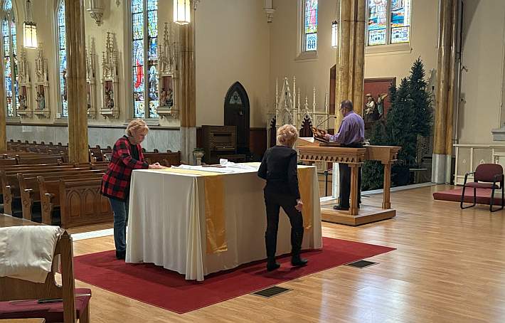 I have a funeral at St. Boniface on Tuesday, but after that we can start setting out flowers and making other arrangements for the Christmas Eve 5:00 PM liturgy.