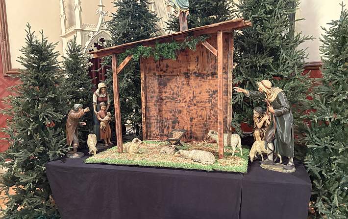 Local shepherds were seen near the nativity scene by the sanctuary and were invited to take their places early.