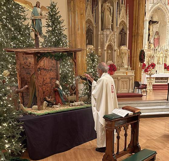 The St. Boniface Christmas Eve service started with a blessing of the nativity scene.