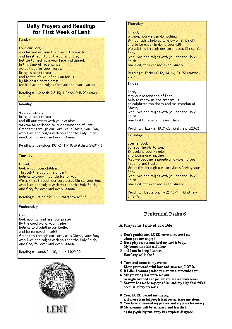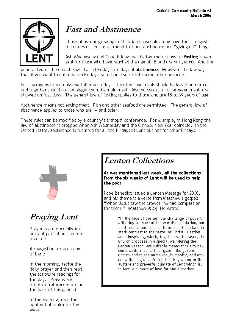 This is a hand-out for the 1st Sunday of Lent given to the English-speaking Catholic community at their one weekly liturgy on Saturday evening.