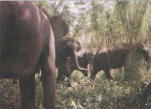 The automatic, motion-sensing cameras installed in the jungle in Cambodia's northeast made the first photo of the wild asia water buffalo, but they also caught pictures of other forms of Cambodia's larger mammals. Here a family of elephants trigger the camera's sensor as they move through the jungle.