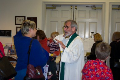 St. Francis church has six masses on the weekend, one on Saturday evening, four on Sunday morning, and one on Sunday evening. After each of the masses I would talk to people in the lobby of the chuch where I had displayed books and posters and other articles brought from Cambodia. |